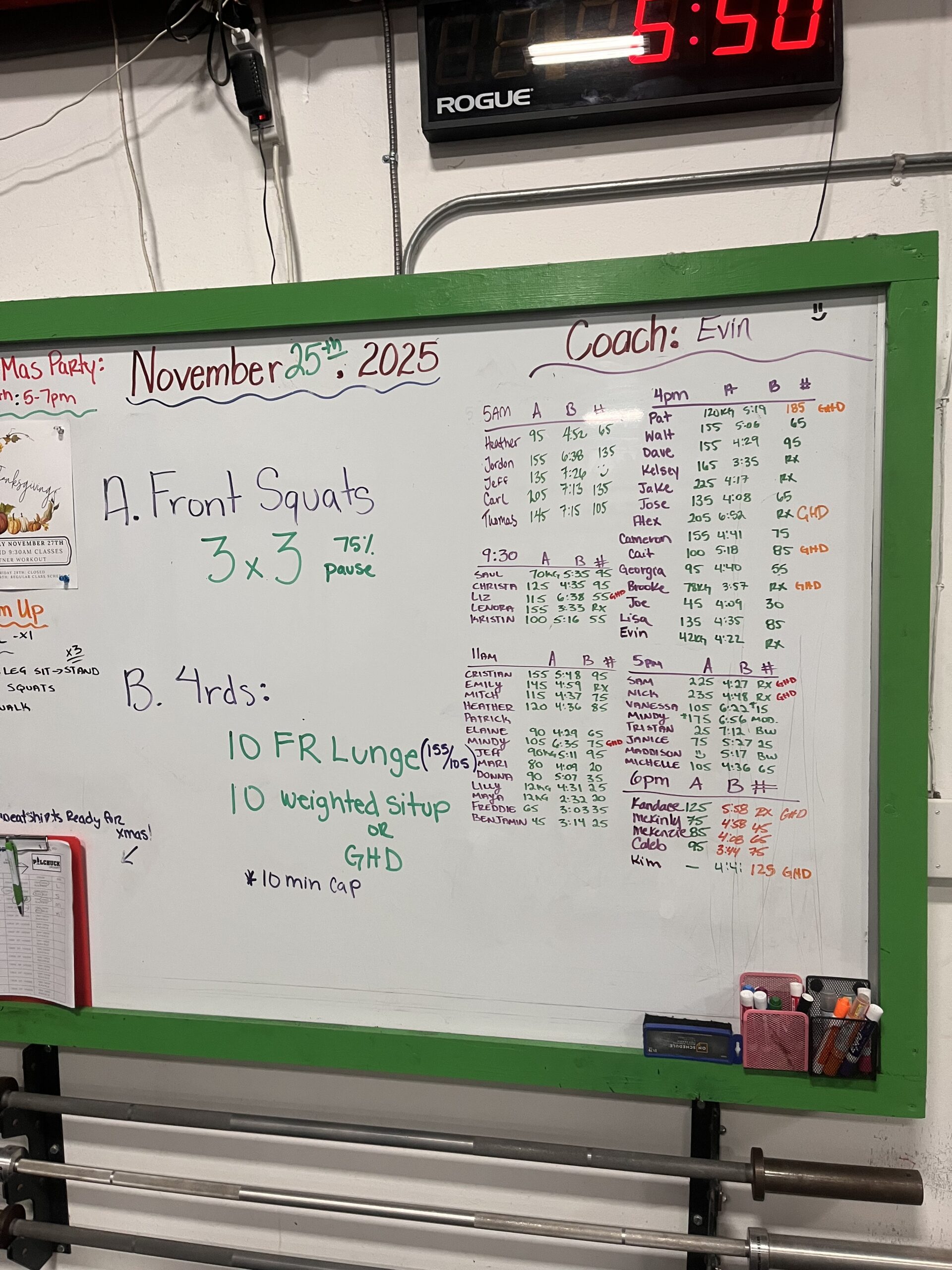 10 Front Rack Lunge (155/105)